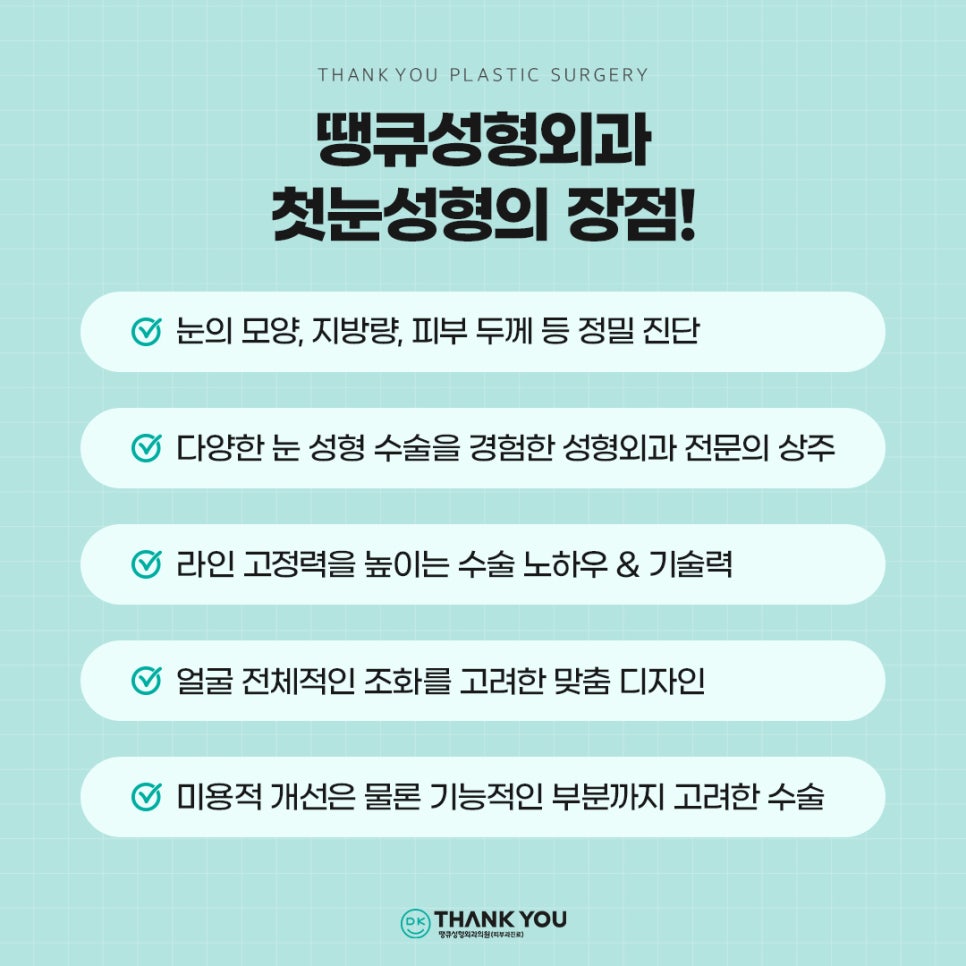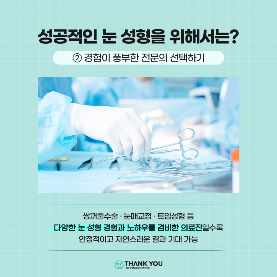 땡큐성형외과는 쌍꺼풀 수술, 눈매교정, 트임 성형뿐 아니라