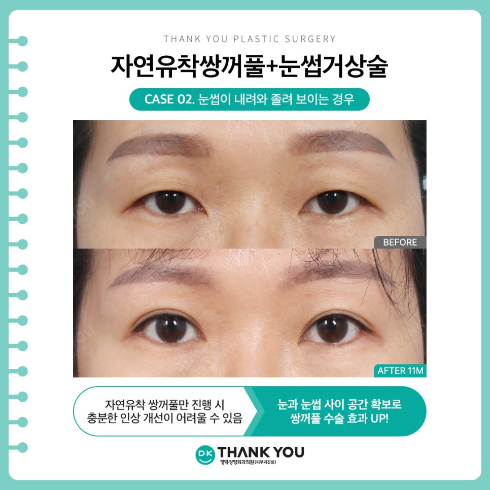 이러한 경우 자연유착쌍커풀과 눈썹하거상술을 함께 진행하면