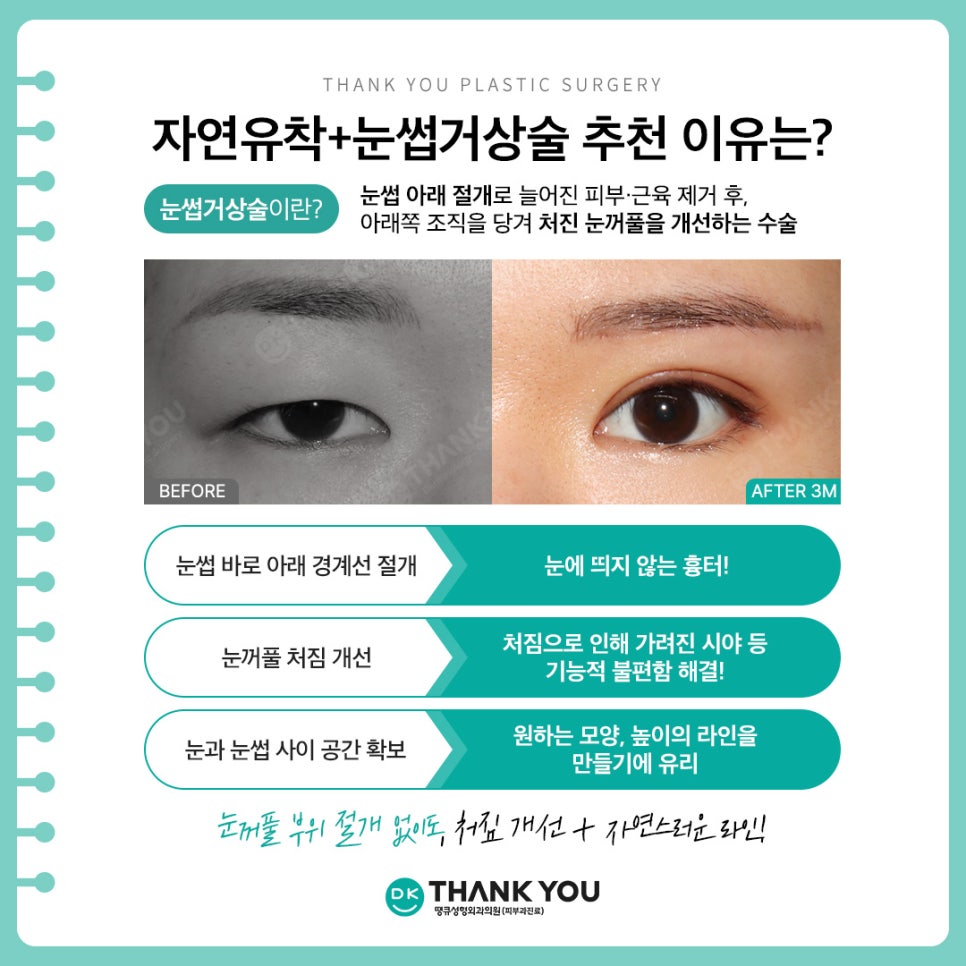 자연유착쌍커풀 + 눈썹하거상술 조합에 대해