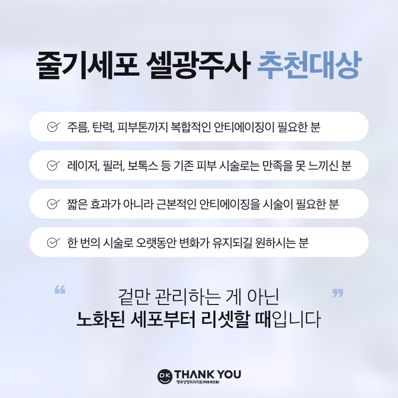 세포 자체를 리셋하는 근본적인 안티에이징 시술입니다.